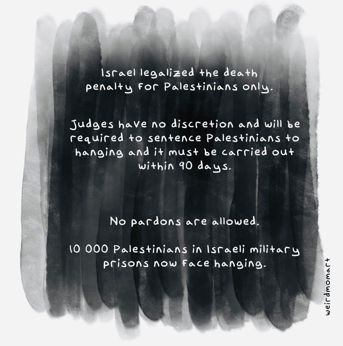 Yeah, my reaction is that with this law, after invoking the right to starve and the right to torture the Palestinians, and now Israel claims also and can use the right to hang the Palestinians directly from prison based on a discriminatory legal regime, which further worsens the apartheid features of the Israeli system and crushing completely any resemblance of new process.
