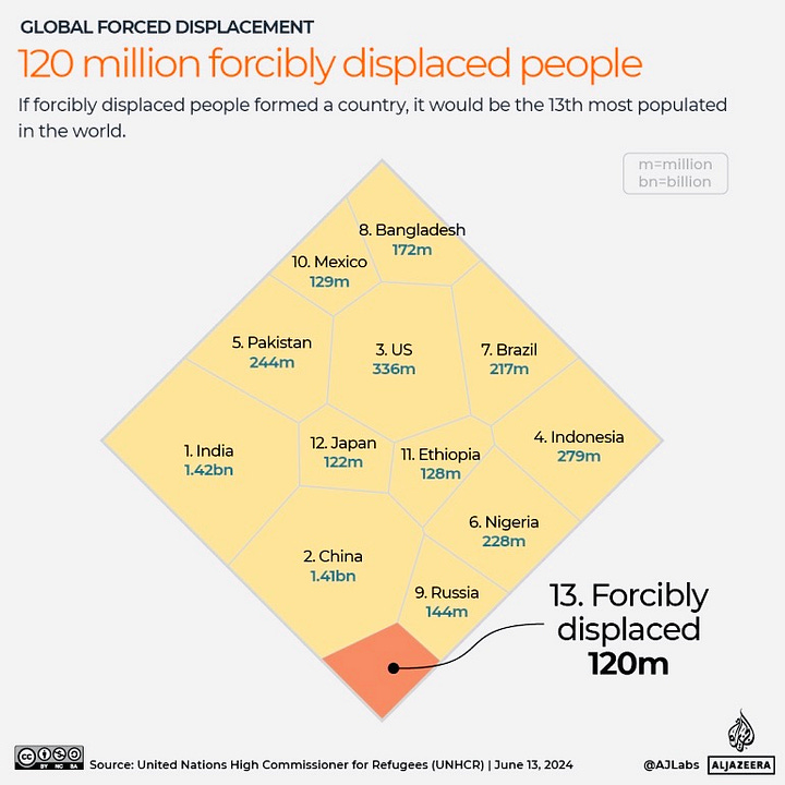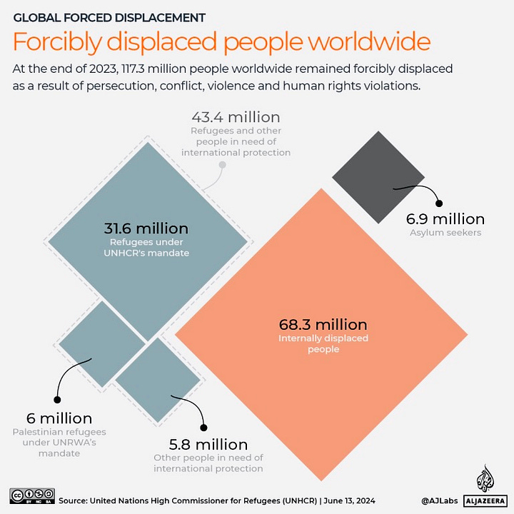 A further 9.1 million Sudanese were displaced within the country, including people displaced by previous conflict.Β Sudan now has the largest internally displaced population ever reported.